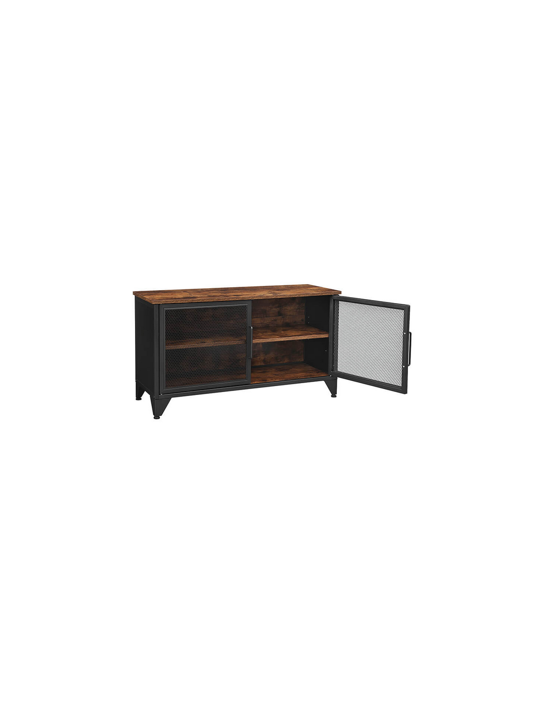 Sideboard udført i et design af sortlakeret metal og brun møbelplade. Sideboardet måler 55,5 cm i højden og 100 x 35 cm i bredde og dybde.