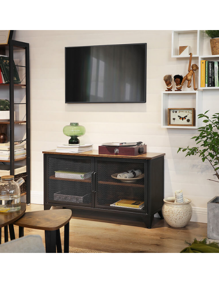 Sideboard i metal og møbelplade H55,5 x B100 x D35 cm - Sort/Brun
