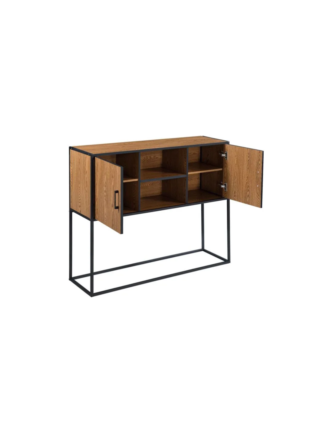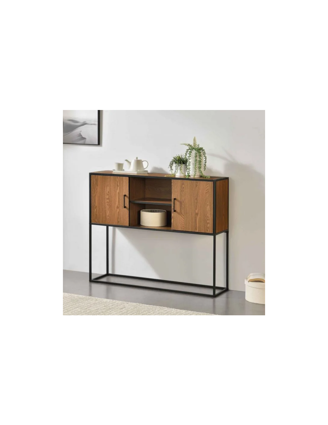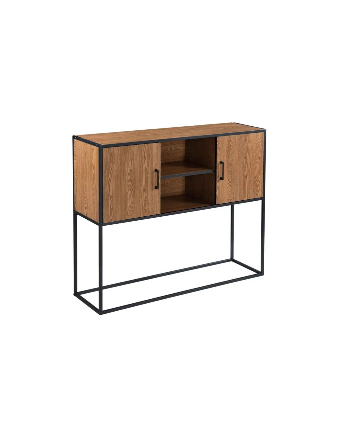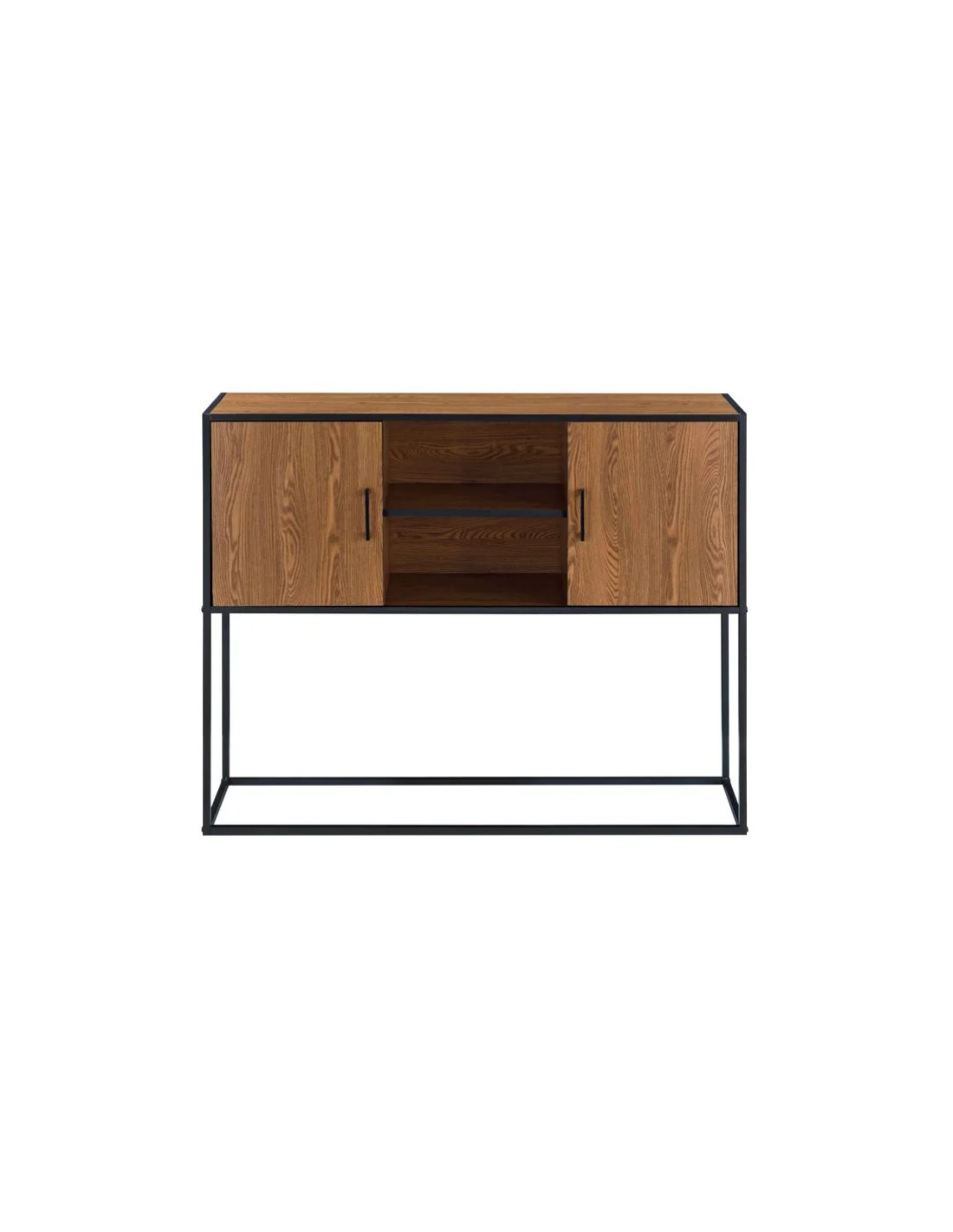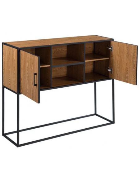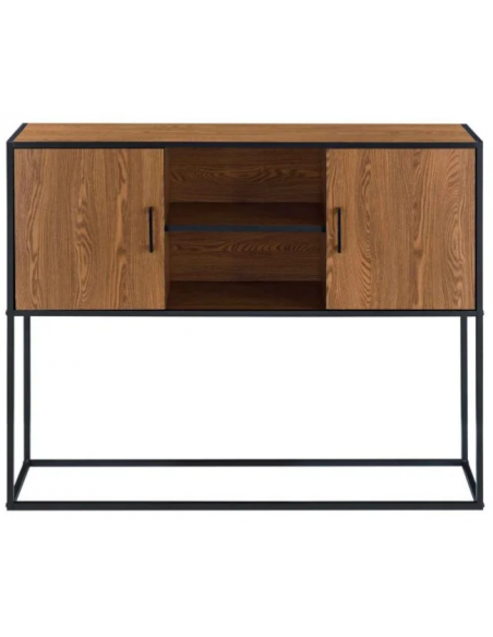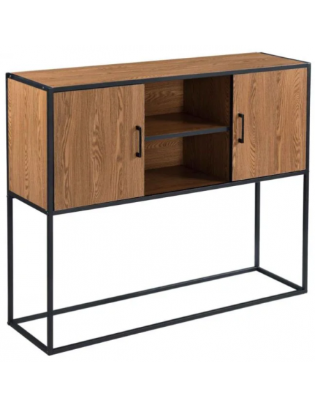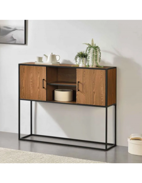 Sideboard i metal og møbelplade H90 x B108,5 cm - Sort/Nød