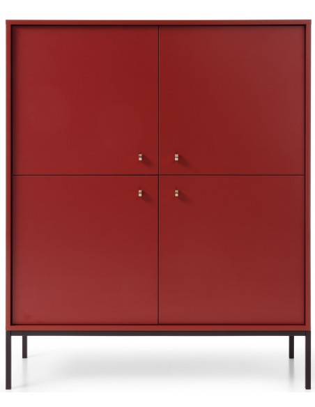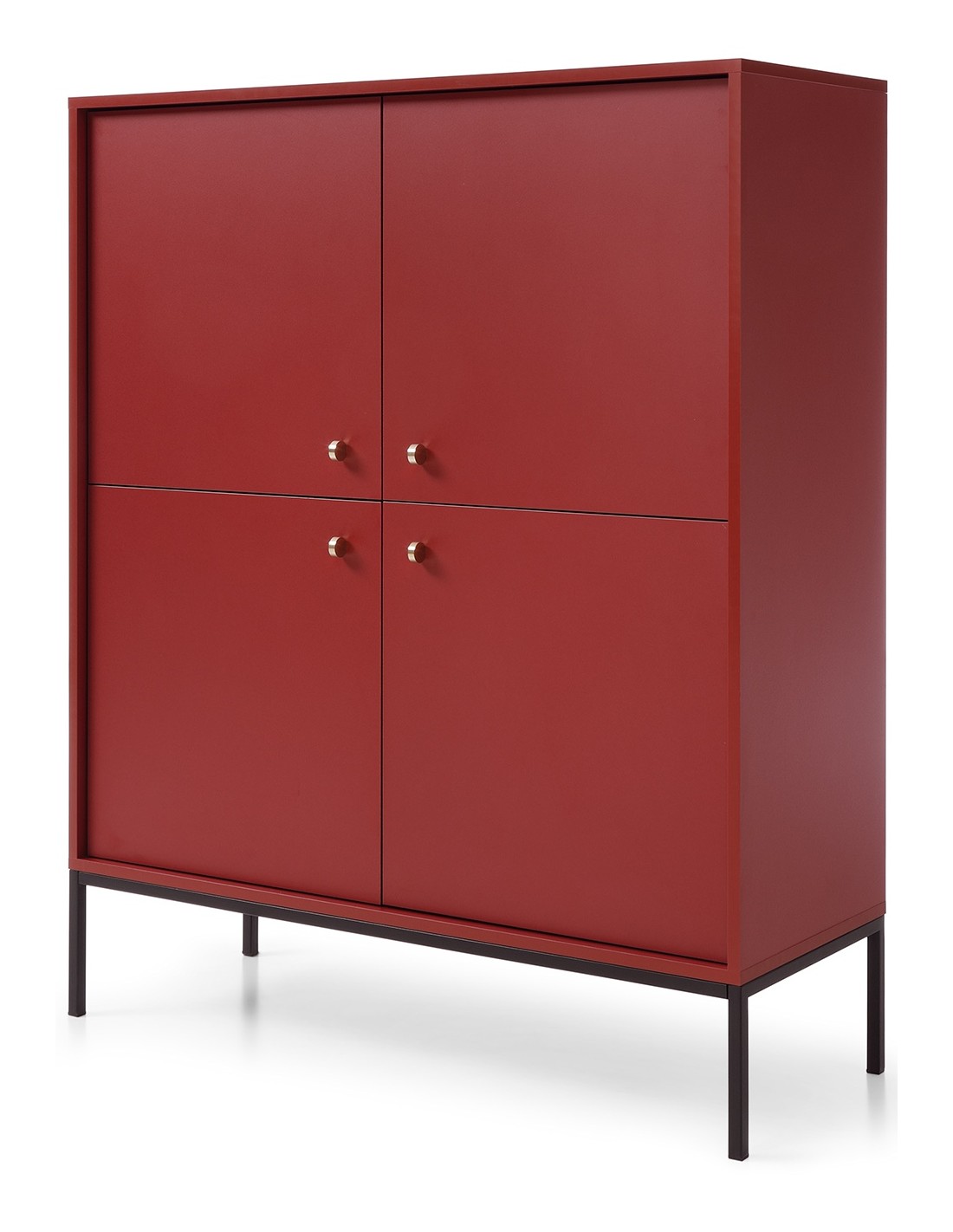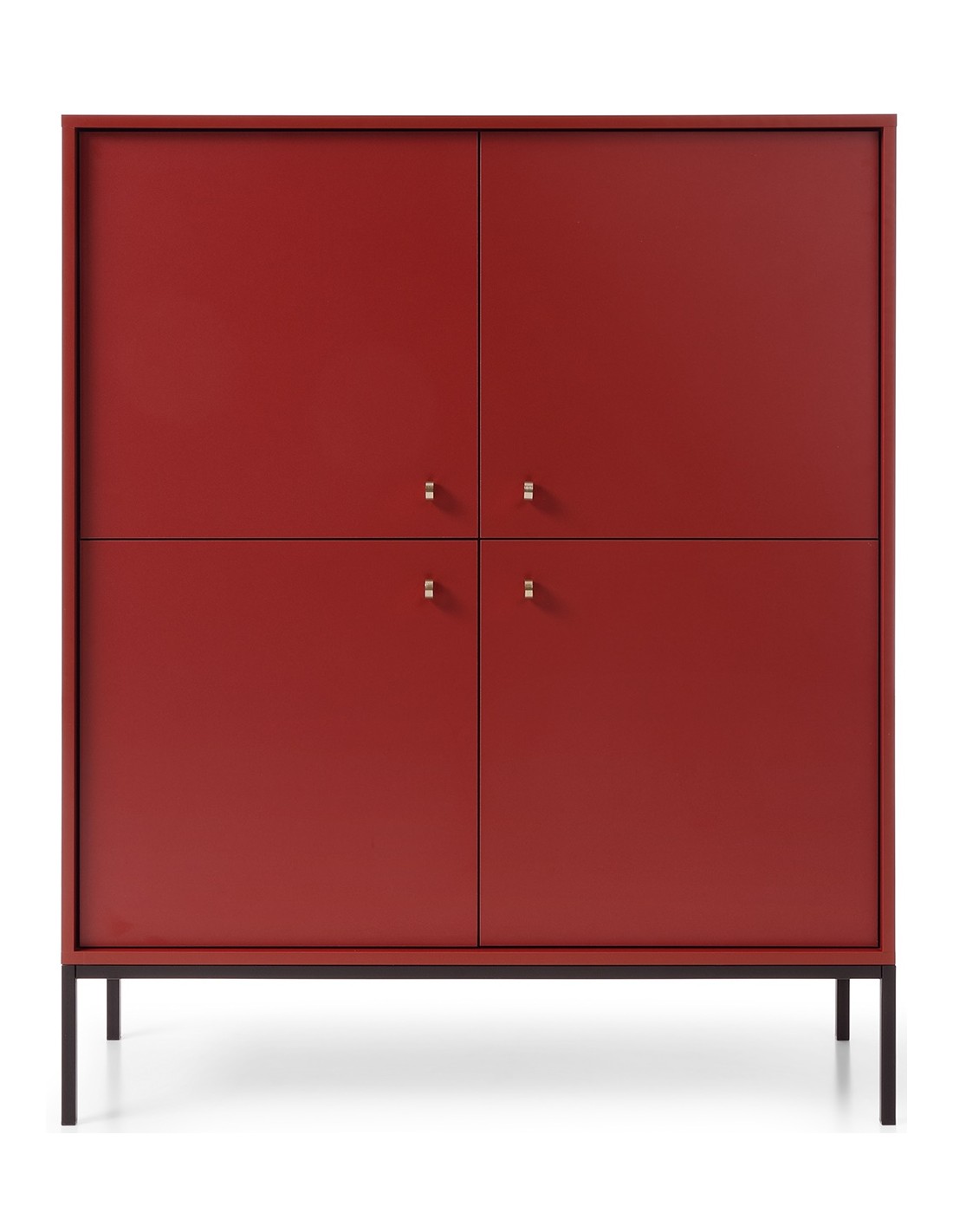 Mono highboard udført i et design af sortlakeret metal og bordeaux farvet møbelplade. Møblet måler 125 cm i højden og 153 x 39 cm i bredde og dybde og indeholder 4 skabsrum.