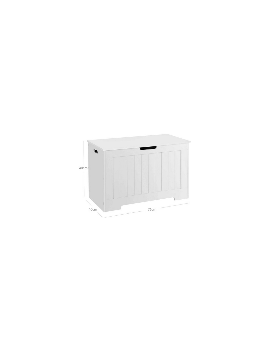 Legetøjskiste udført i et design af hvid mdf. Kisten måler 48 cm i højden og 76 x 40 cm i bredde og dybde.