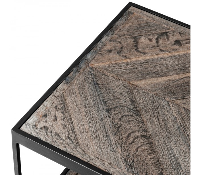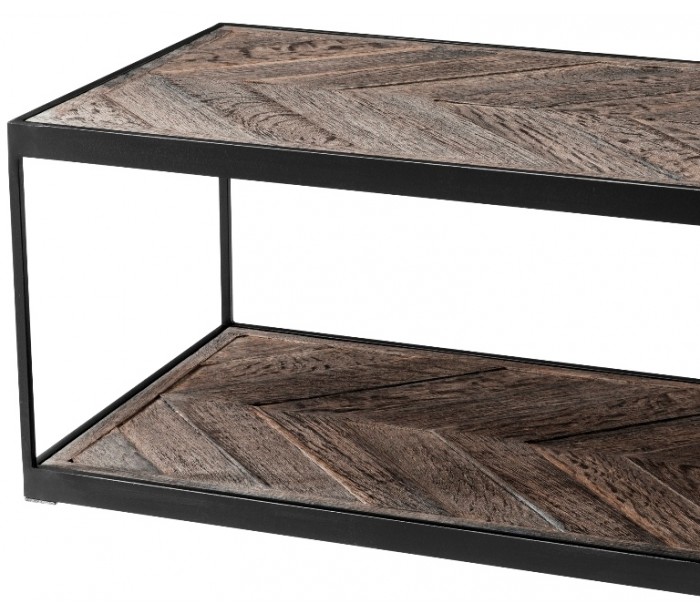 Eichholtz La Varenne sofabord i et smukt udført design af genanvendt egetræ og sortlakeret metal. Sofabordet måler 35 cm i højden og 190 x 45 cm i bredde og dybde.