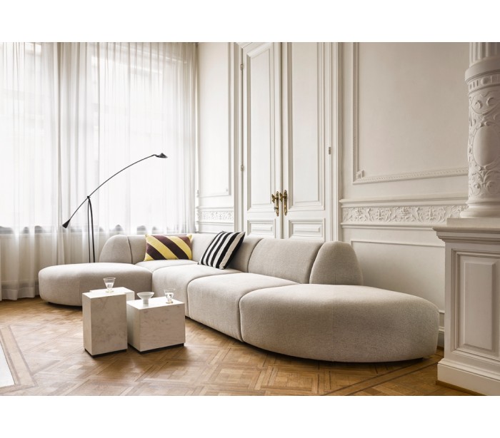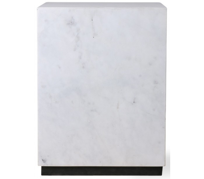 Sofabord i et design fremstillet i hvid marmor og med bund i sortlakeret mdf. Sofabordet måler 37,5 cm i højden og 28 cm i bredde og dybde.
