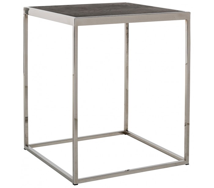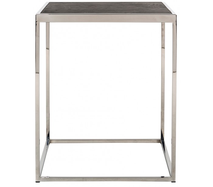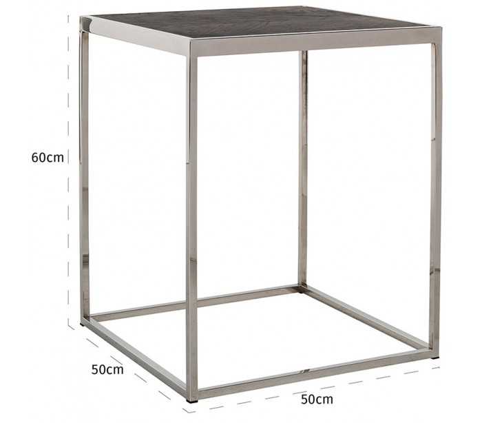 Sofabord i et design fra hollandske Richmond Interiors. Bordet er fremstillet i sølvfarvet stål og sortbejset egetræ og måler 50 cm i bredde og dybde og 60 cm i højden.