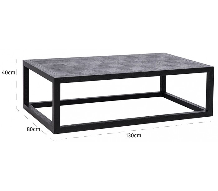 Sofabord i et design fra hollandske Richmond Interiors. Bordet er fremstillet i sortlakeret egetræ og måler 130 x 80 cm i bredde og dybde og 40 cm i højden.