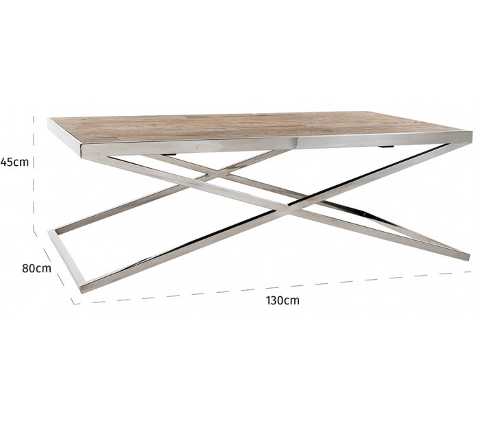 Sofabord i et design fra hollandske Richmond Interiors. Bordet er fremstillet i et design af genanvendt elmetræ og sølvfarvet stål og måler 130 x 80 cm i bredde og dybde og 45 cm i højden.