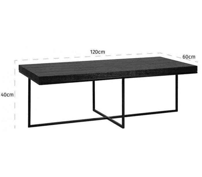 Sofabord i et design fra hollandske Richmond Interiors. Bordet er fremstillet i sort egetræsfinér og jern og måler 120 x 60 cm i bredde og dybde og 40 cm i højden.