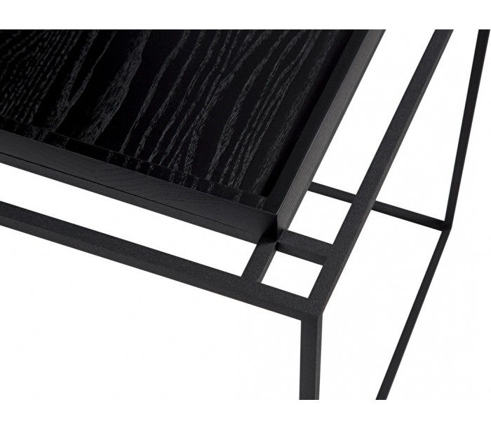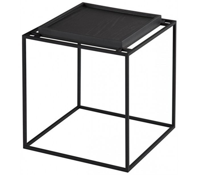 Tray sofabord i egetræ og metal 40 x 40 cm - Sort/Sort