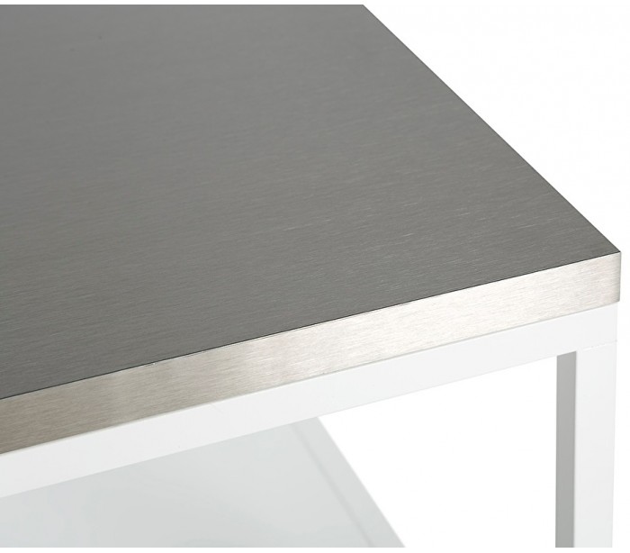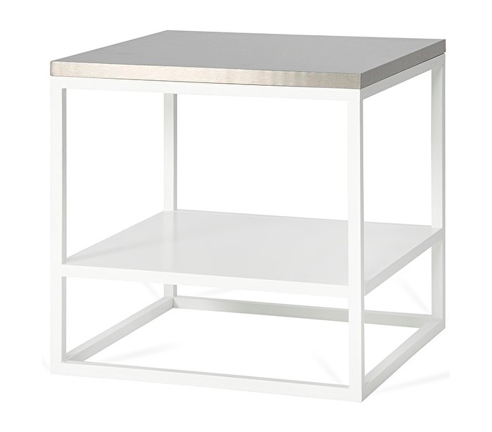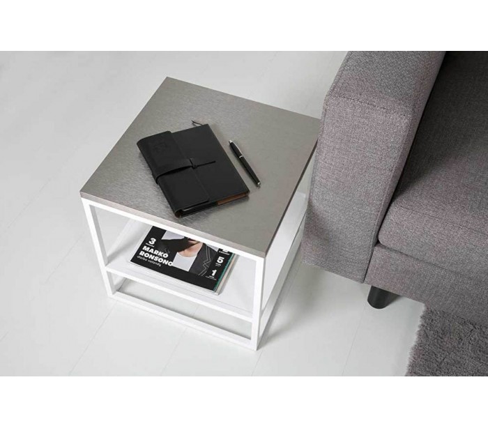 Sofabord i et design fremstillet med bordplade i stålbelagt mdf og stel i lakeret metal. Sofabordet måler 40 x 40 cm i bredde og dybde og 40 cm i højden. Sofabordet er også anvendeligt som sengebord.