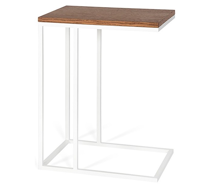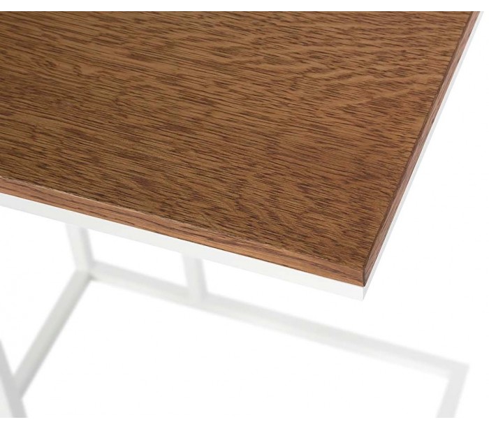 Sofabord i et stilrent design, fremstillet i hvid pulverlakeret metal og brun mdf. Sofabordet måler 35 x 45 cm i bredde og dybde og 58 cm i højden. Sofabordet kan også anvendes som sengebord.