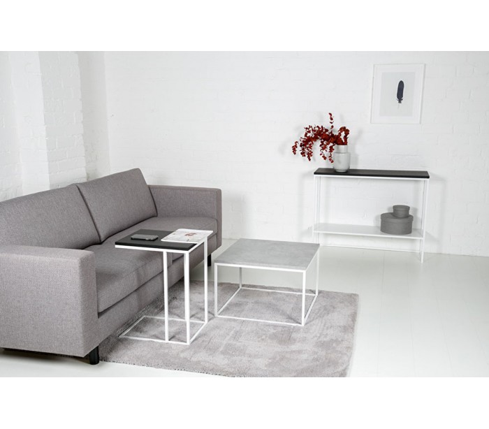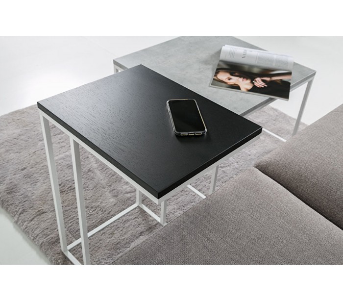Sofabord i et stilrent design, fremstillet i hvid pulverlakeret metal og sort mdf. Sofabordet måler 35 x 45 cm i bredde og dybde og 58 cm i højden. Sofabordet kan også anvendes som sengebord.