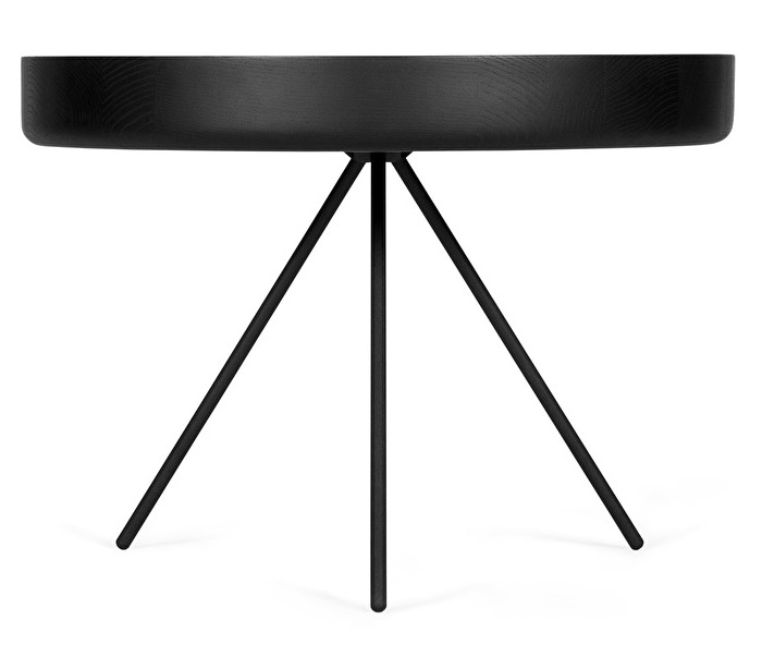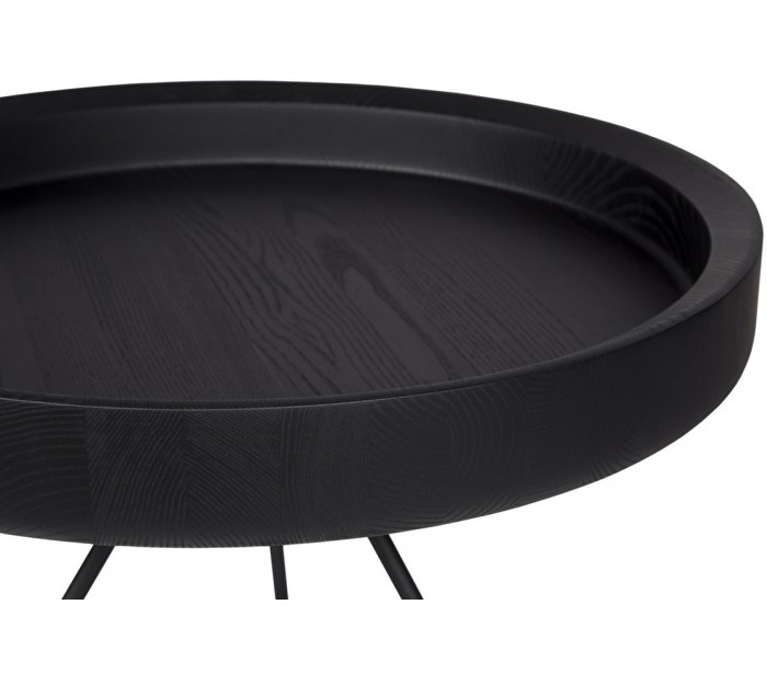 Sofabord i et design fremstillet med bordplade i ask træ og stel i lakeret metal. Sofabordet måler 60 cm i diameter og 43 cm i højden.