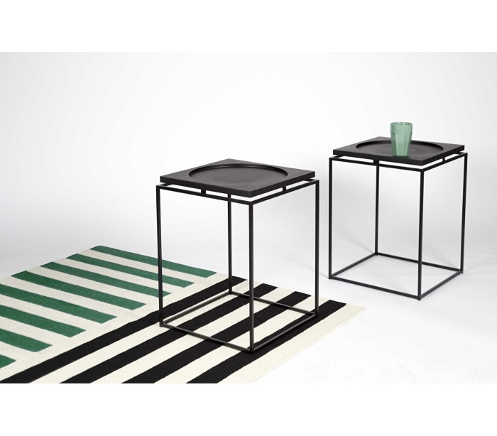 Sofabord i et stilrent design, fremstillet i sort pulverlakeret metal og sortlakeret egetræ. Sofabordet måler 40 x 40 cm i bredde og dybde og 53 cm i højden. Sofabordet kan også anvendes som sengebord.