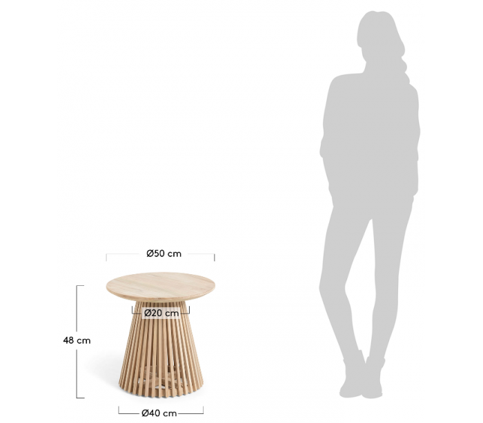 Sofabord i et design fra LaForma. Bordet er fremstillet i ubehandlet teaktræ og måler 48 cm i højden og 50 cm i diameter.