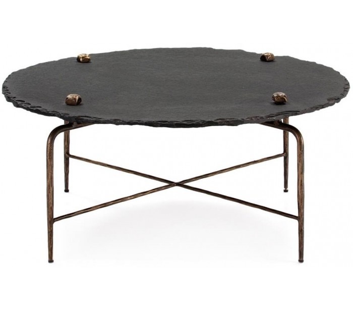 Sofabord i metal og sten Ø92 cm - Antik guld/Sort
