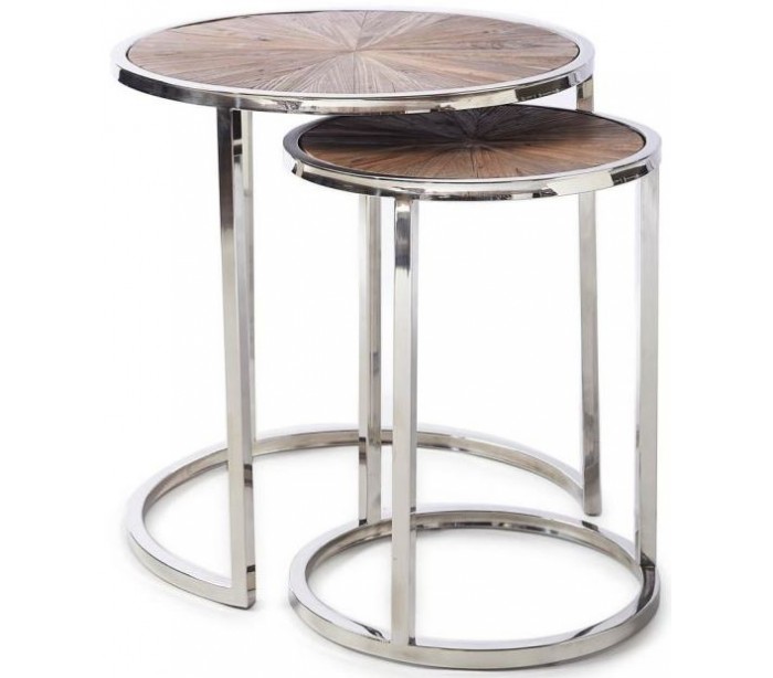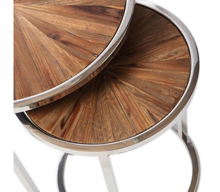 Sofaborde i genanvendt egetræ og stål Ø40/55 cm - Rustfri stål/Natur