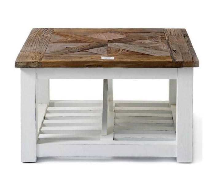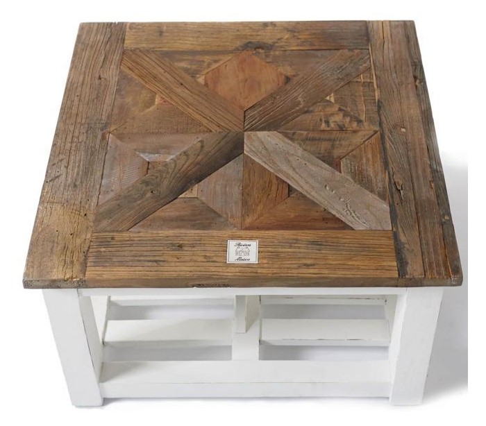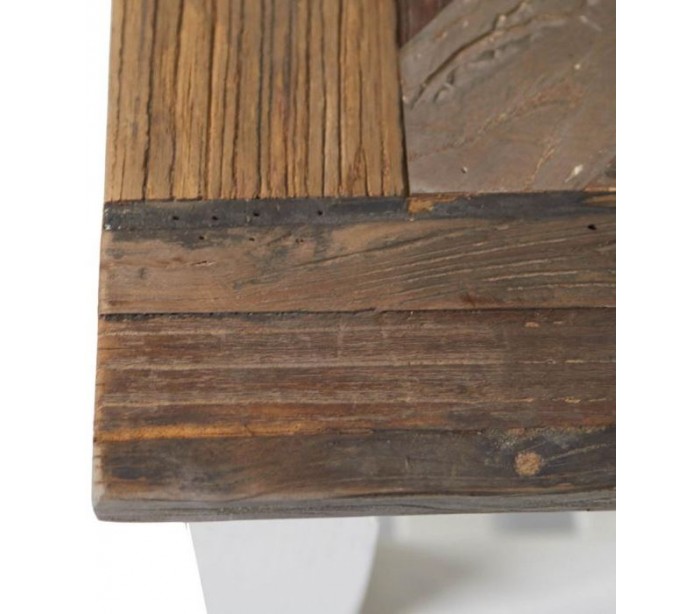 Sofabord i genanvendt elmetræ 70 x 70 cm - Antik hvid/Natur