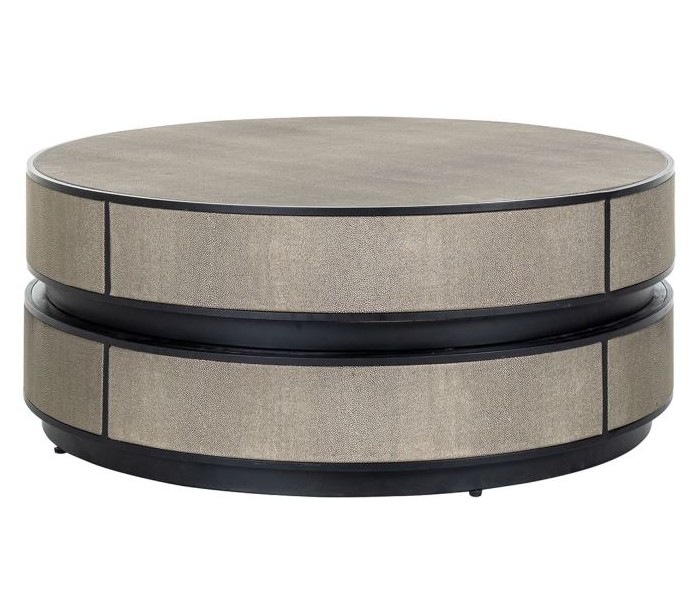 Sofabord i et design fra hollandske Richmond Interiors. Bordet er fremstillet i sortlakeret stål og grågrøn pu-læder og måler 92 cm i diameter og 38 cm i højden.