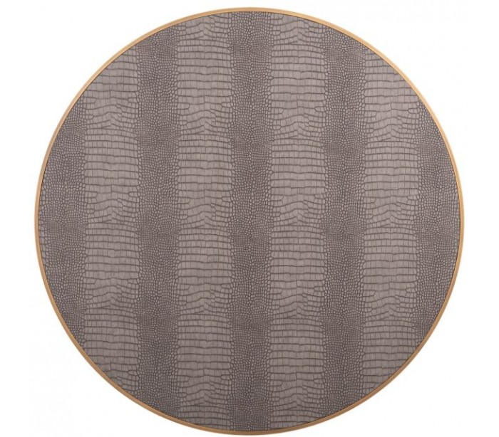 Sofabord i et design fra hollandske Richmond Interiors. Bordet er fremstillet i antik guldfarvet stål og gråbrun vegansk læder og måler 100 cm i diameter og 41,5 cm i højden.
