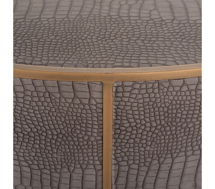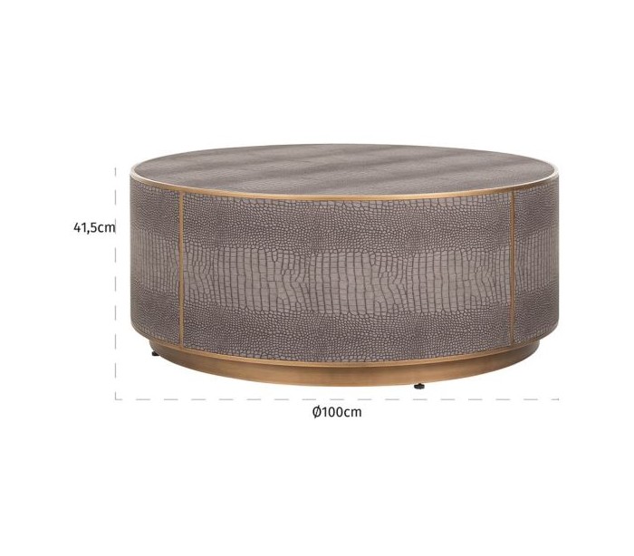 Classio sofabord i vegansk læder og stål Ø100 cm - Antik guld/Gråbrun