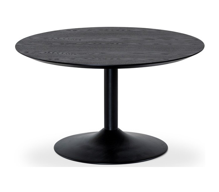 Sofabord i et moderne design, fremstillet med bordplade i sortlakeret ask træ og stel i sortlakeret metal. Bordet måler 80 cm i diameter og 46 cm i højden.