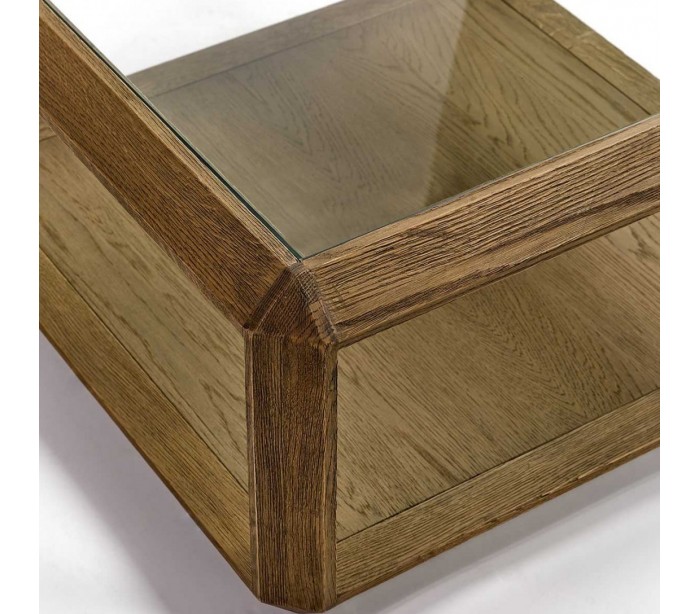 Sofabord i egetræ og glas 80 x 80 cm - Børstet eg