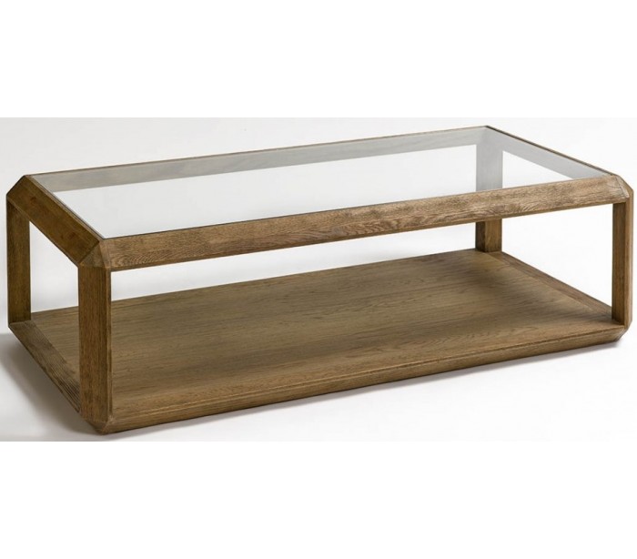 Sofabord i egetræ og glas 140 x 70 cm - Børstet eg