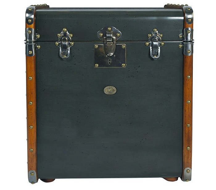 Kuffert sidebord fra Authentic Models. Bordet er udført i vintage petroliumsblå lakeret fyrretræ og med detaljer i vintage honningbrun lakeret ahorntræ og messing. Kuffertbordet måler 56 cm i højden og 53 x 45 cm i bredde og dybde.