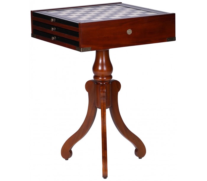 Spillebord fra Authentic Models. Bordet er udført i vintage honningbrun lakeret limtræ og med 3 spilplader til udtræk (terning, backgammon eller skak). Bordet måler 66 cm i højden og 45 x 45 cm i bredde og dybde.
