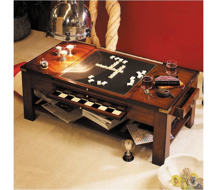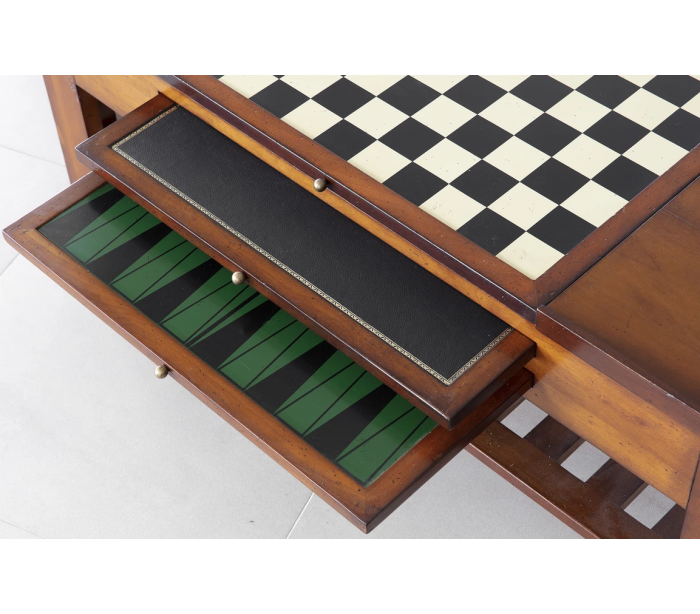 Spillebord fra Authentic Models. Bordet er udført i vintage honningbrun lakeret fyrretræ og med 3 dobbelte spilplader til udtræk. Bordet måler 50 cm i højden og 120 x 62 cm i bredde og dybde.