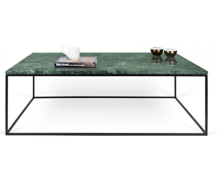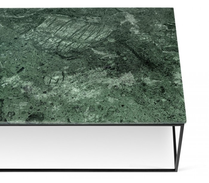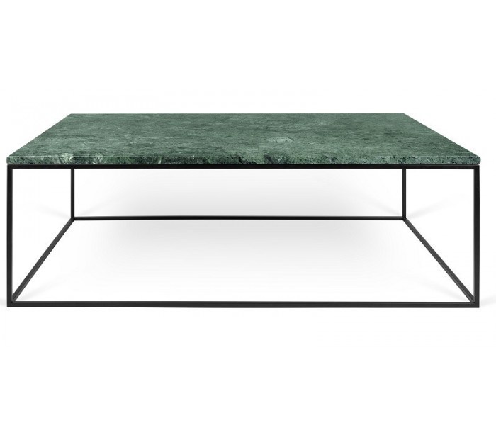 TemaHome Gleam sofabord udført i et design af sortlakeret metal og grøn marmor. Sofabordet måler 40 cm i højden og 120 x 75 cm i bredde og dybde.