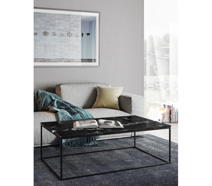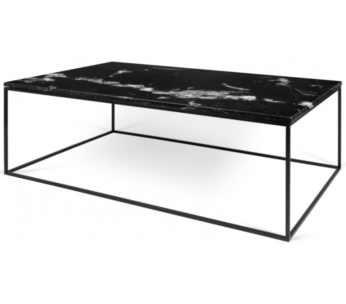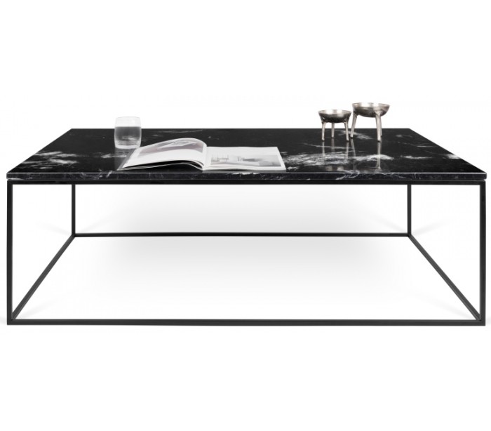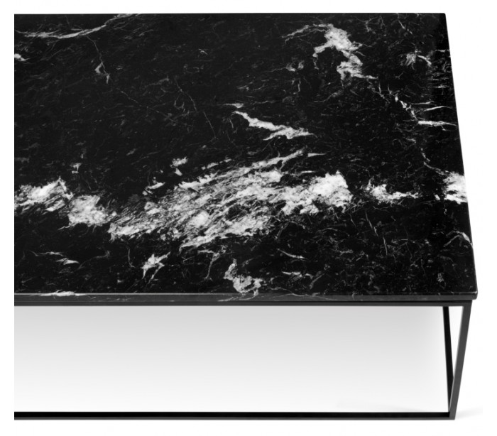 TemaHome Gleam sofabord udført i et design af sortlakeret metal og sort marmor. Sofabordet måler 40 cm i højden og 120 x 75 cm i bredde og dybde.