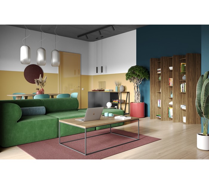 TemaHome Gleam sofabord udført i et design af sortlakeret metal og valnøddefarvet finér. Sofabordet måler 40 cm i højden og 120 x 75 cm i bredde og dybde.