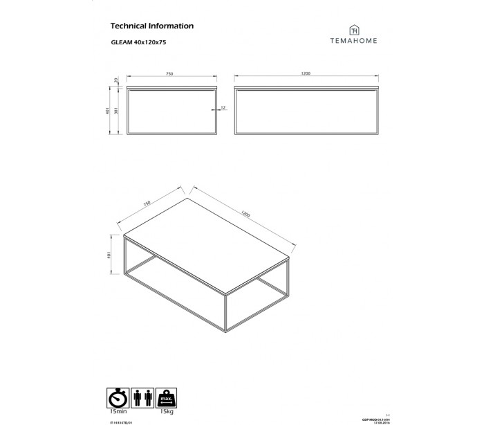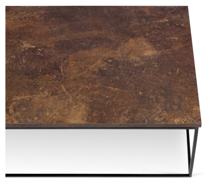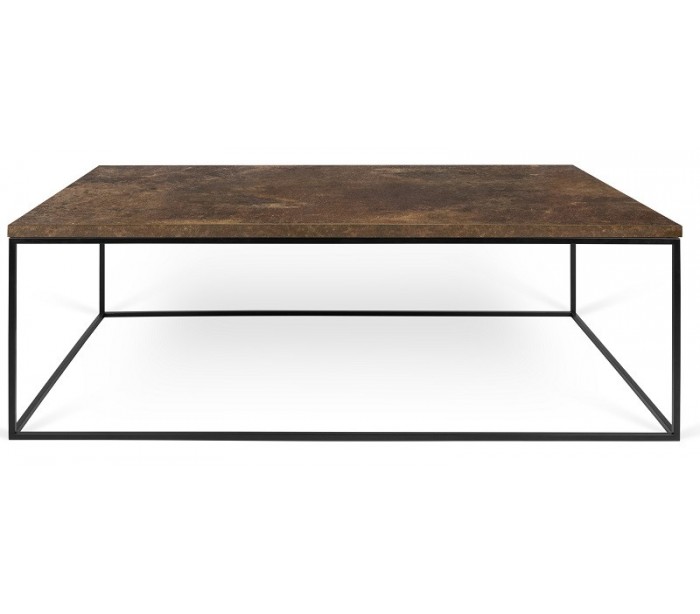 TemaHome Gleam sofabord udført i et design af sortlakeret metal og rustbrun finér. Sofabordet måler 40 cm i højden og 120 x 75 cm i bredde og dybde.