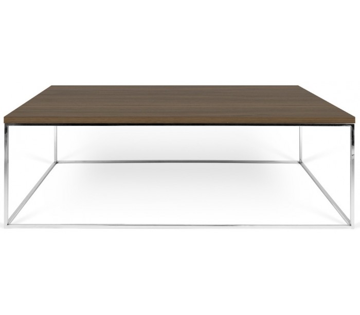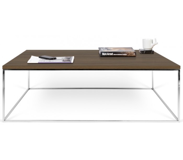 TemaHome Gleam sofabord udført i et design af kromlakeret metal og valnøddefarvet finér. Sofabordet måler 40 cm i højden og 120 x 75 cm i bredde og dybde.