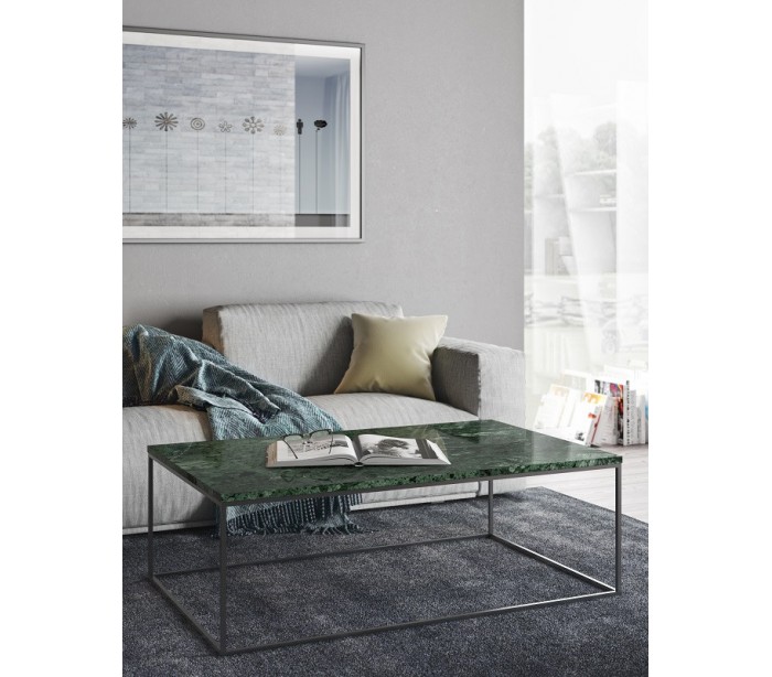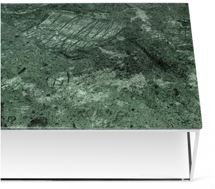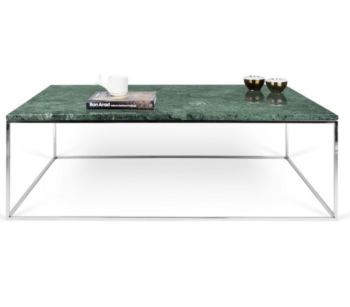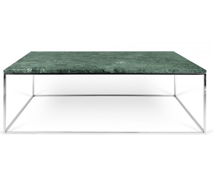 TemaHome Gleam sofabord udført i et design af kromlakeret metal og grøn marmor. Sofabordet måler 40 cm i højden og 120 x 75 cm i bredde og dybde.