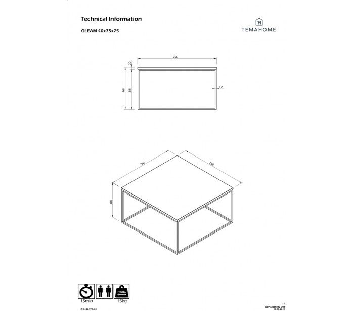• Dybde: 75 cm