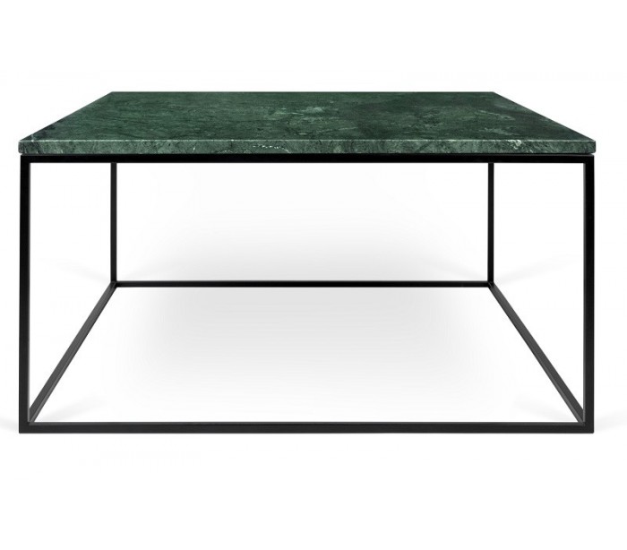 TemaHome Gleam sofabord udført i et design af sortlakeret metal og grøn marmor. Sofabordet måler 40 cm i højden og 75 x 75 cm i bredde og dybde.