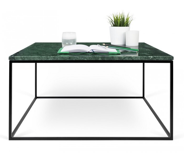 TemaHome Gleam sofabord i metal og marmor 75 x 75 cm - Sort/Grøn marmor