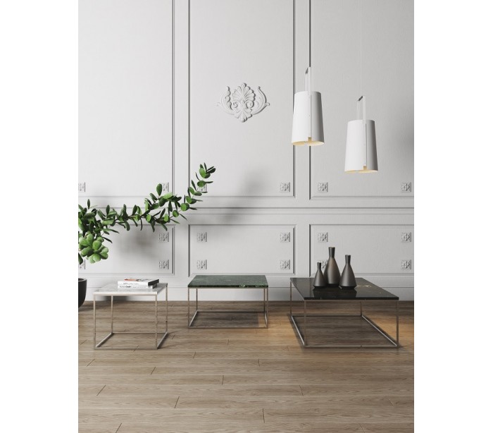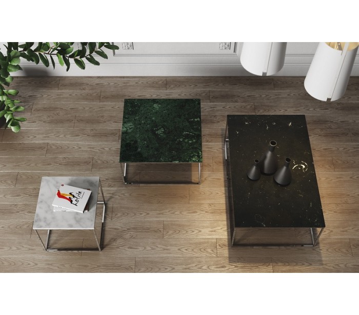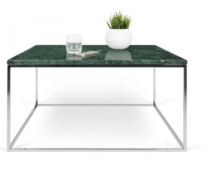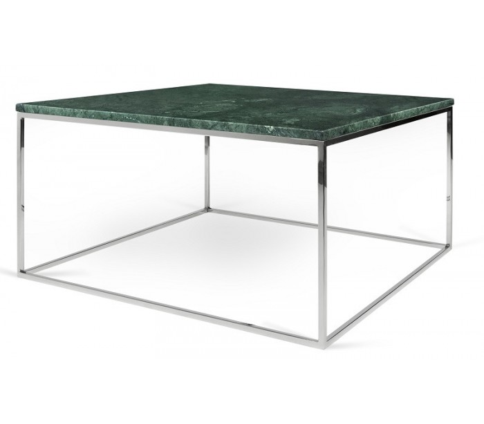 TemaHome Gleam sofabord i metal og marmor 75 x 75 cm - Krom/Grøn marmor