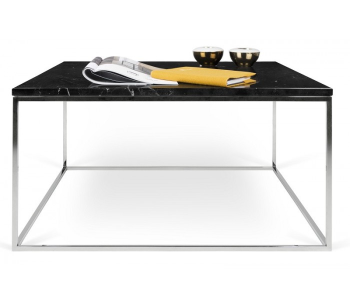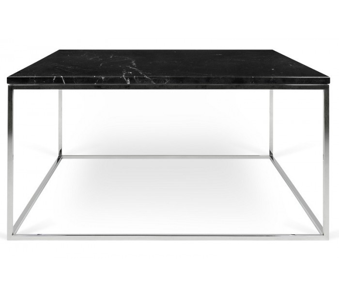 TemaHome Gleam sofabord udført i et design af kromlakeret metal og sort marmor. Sofabordet måler 40 cm i højden og 75 x 75 cm i bredde og dybde.