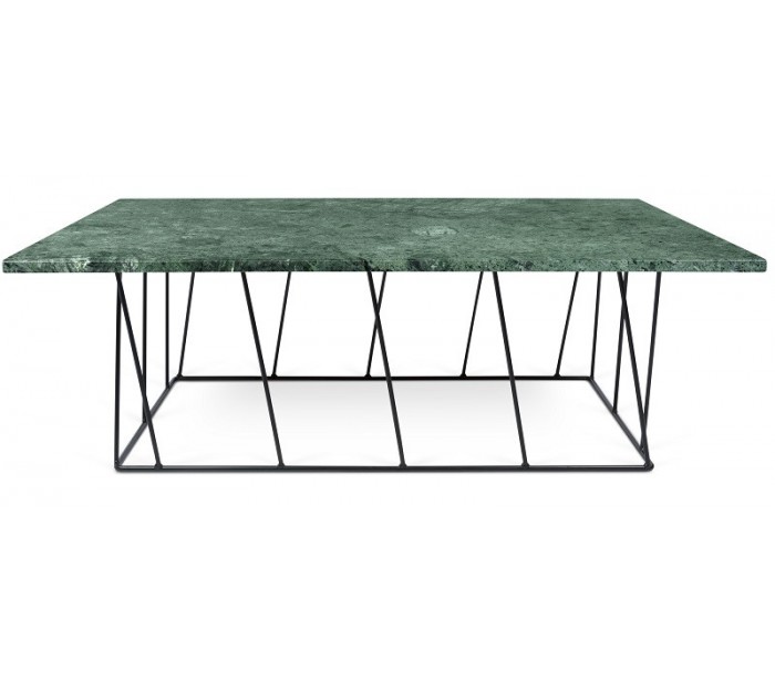 TemaHome Helix sofabord udført i et design af sortlakeret metal og grøn marmor. Sofabordet måler 40 cm i højden og 120 x 75 cm i bredde og dybde.