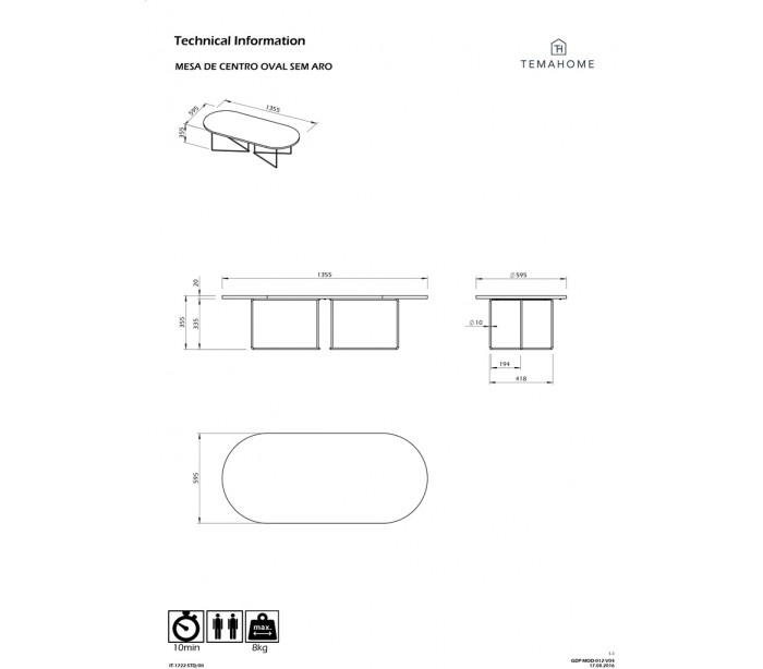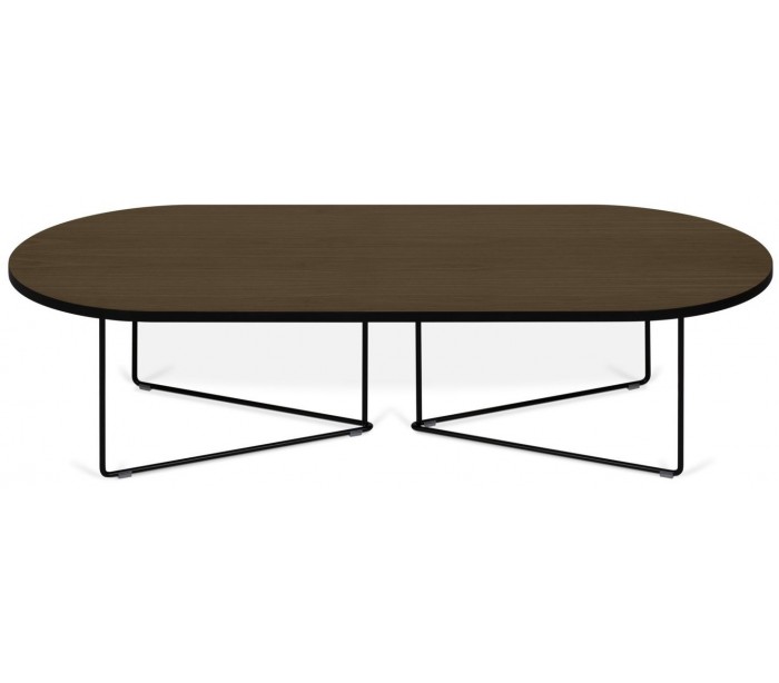 TemaHome Oval sofabord udført i et design af sortlakeret metal og valnøddefolieret spånplade. Sofabordet måler 36 cm i højden og 136 x 60 cm i bredde og dybde.