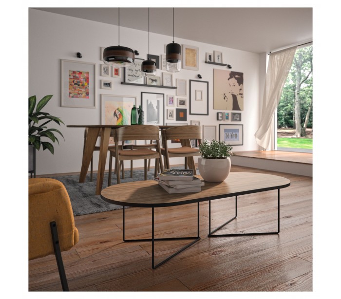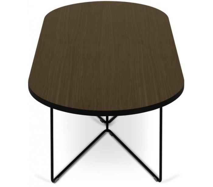 TemaHome Oval sofabord i metal og spånplade 136 x 60 cm - Sort/Valnød