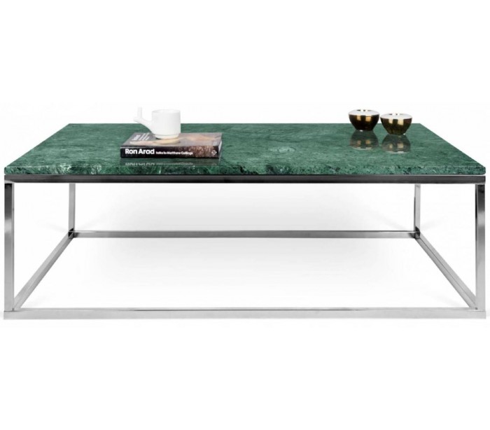 TemaHome Prairie sofabord udført i et design af kromlakeret metal og grøn marmor. Sofabordet måler 32 cm i højden og 120 x 75 cm i bredde og dybde.