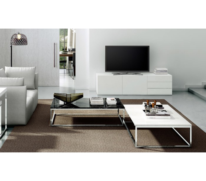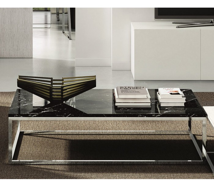TemaHome Prairie sofabord udført i et design af kromlakeret metal og sort marmor. Sofabordet måler 32 cm i højden og 120 x 75 cm i bredde og dybde.