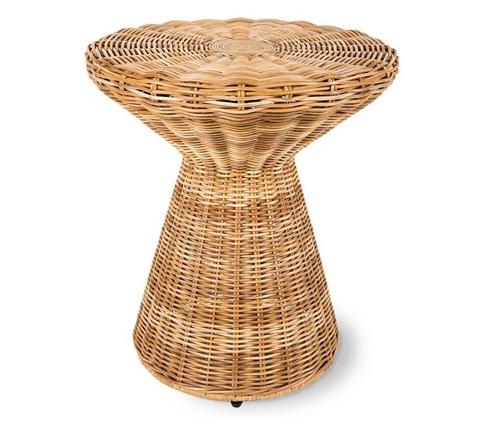 Sofabord udført i et design af naturfarvet rattanflet. Sofabordet måler 52 cm i højden og 46 cm i diameter.
