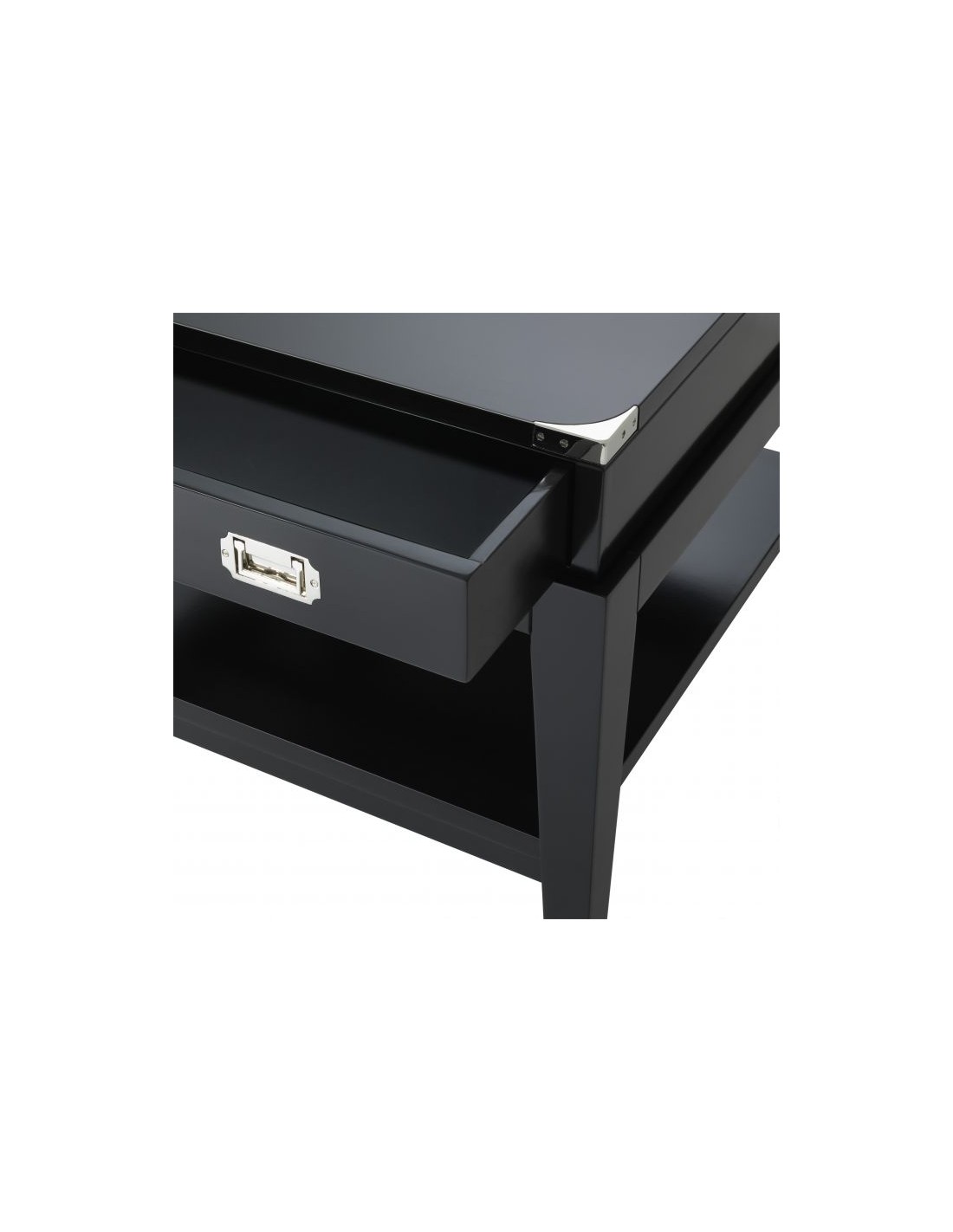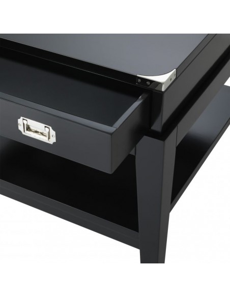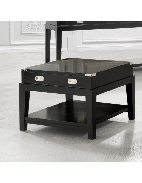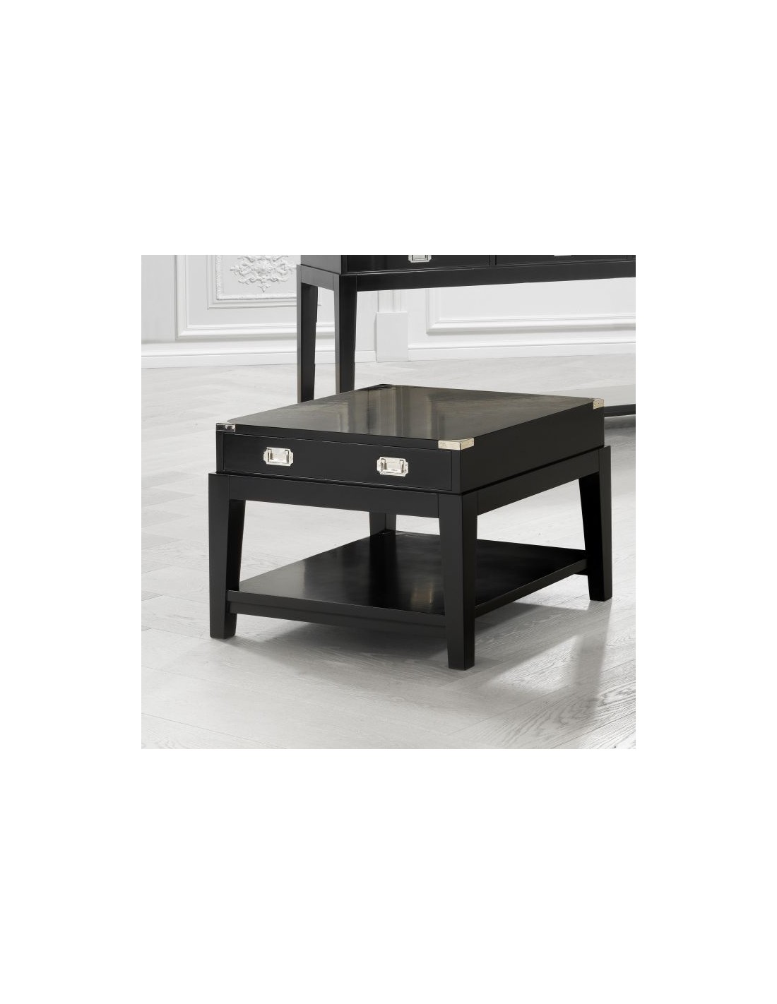 Eichholtz Military sofabord i et moderne design af sortlakeret birketræ og med detaljer i nikkel lakeret metal. Sofabordet måler 50,5 cm i højden og 67,5 x 67,5 cm i bredde og dybde. Sofabordet indeholder 1 skuffe og 1 opbevaringshylde.