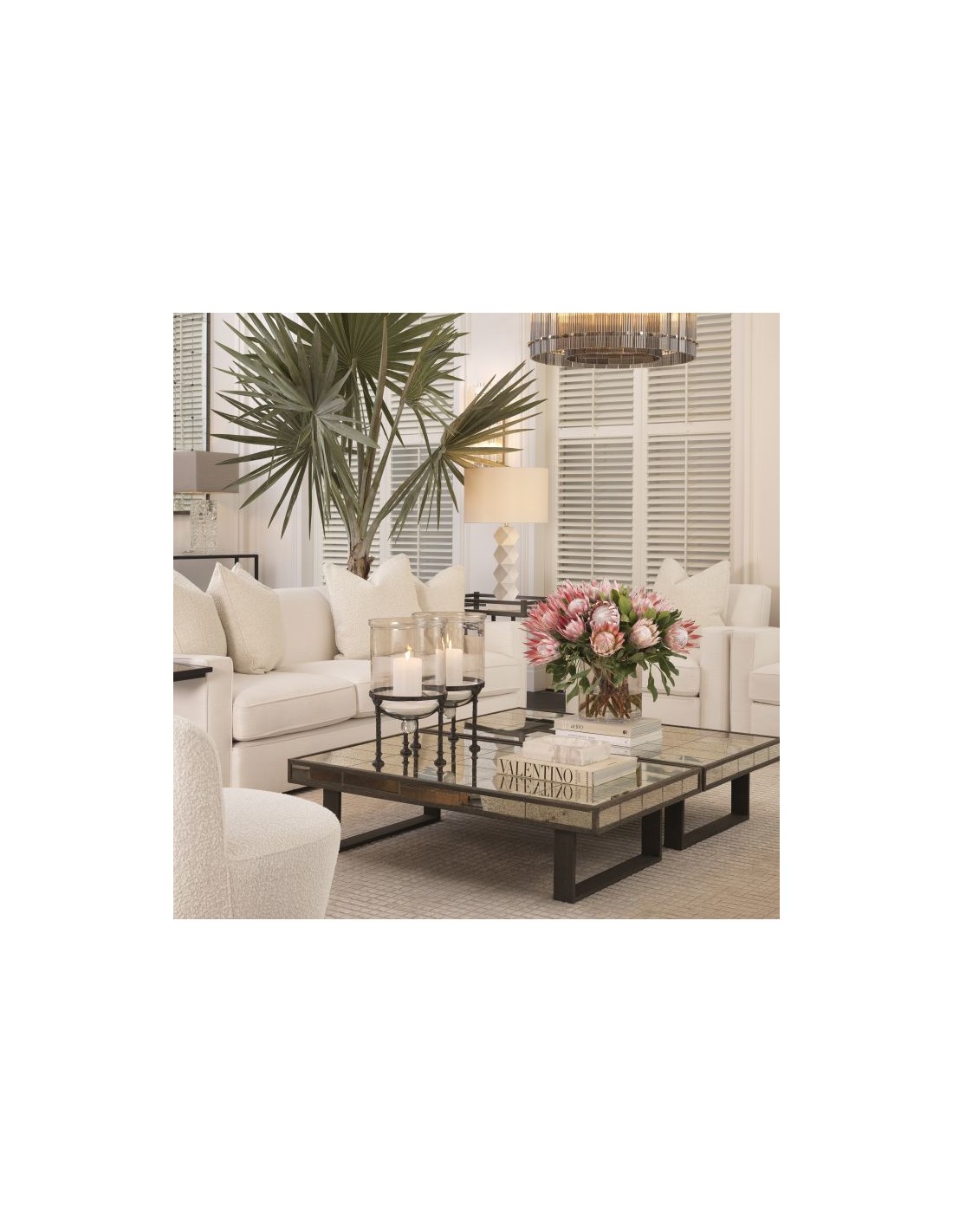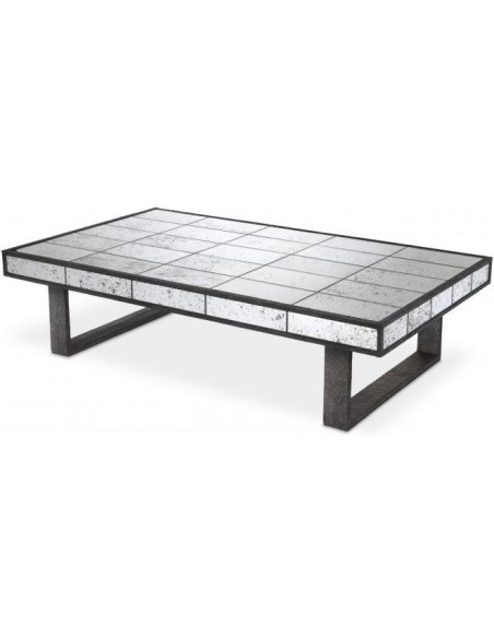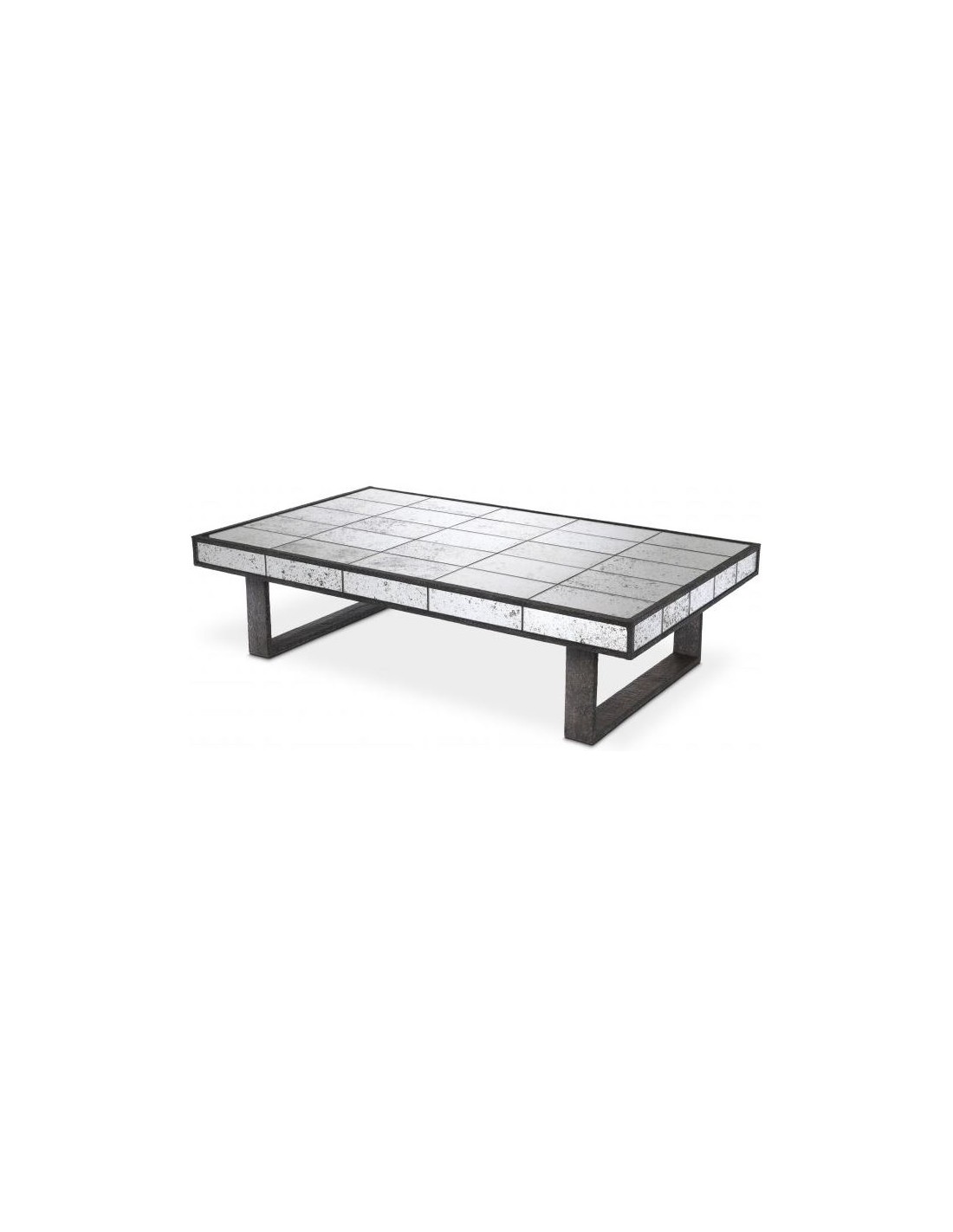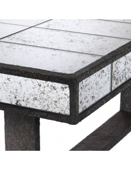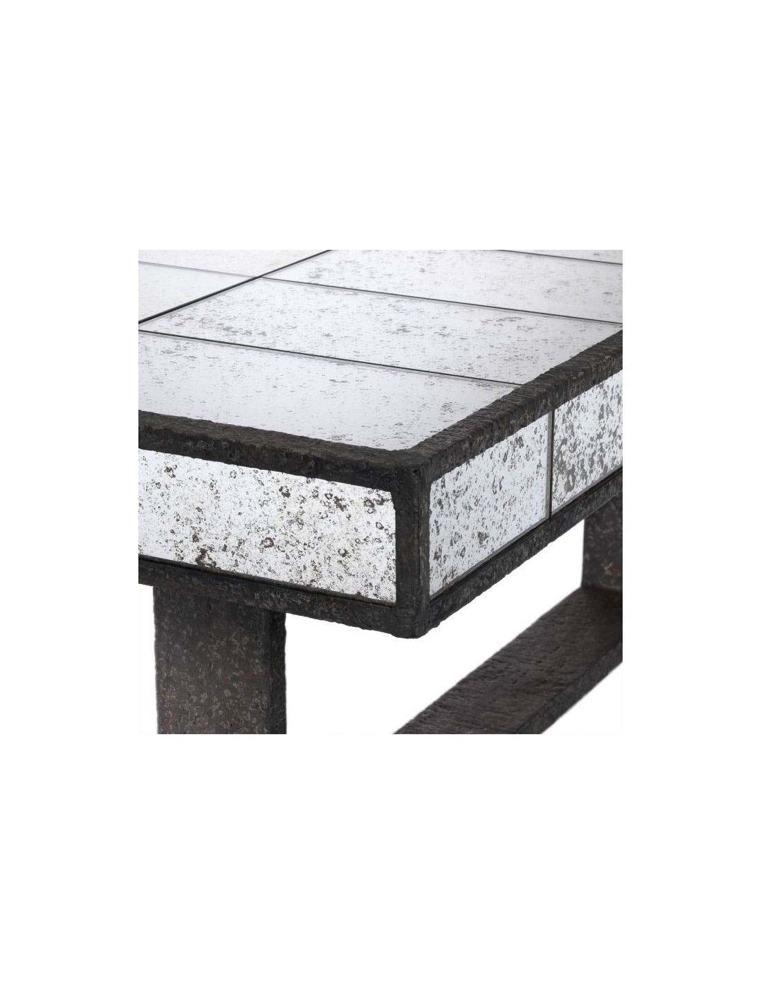 Eichholtz Cervilla sofabord udført i et design af antik rustbrun jern og antik spejlglas. Sofabordet måler 32 cm i højden og 126 x 73,5 cm i bredde og dybde.