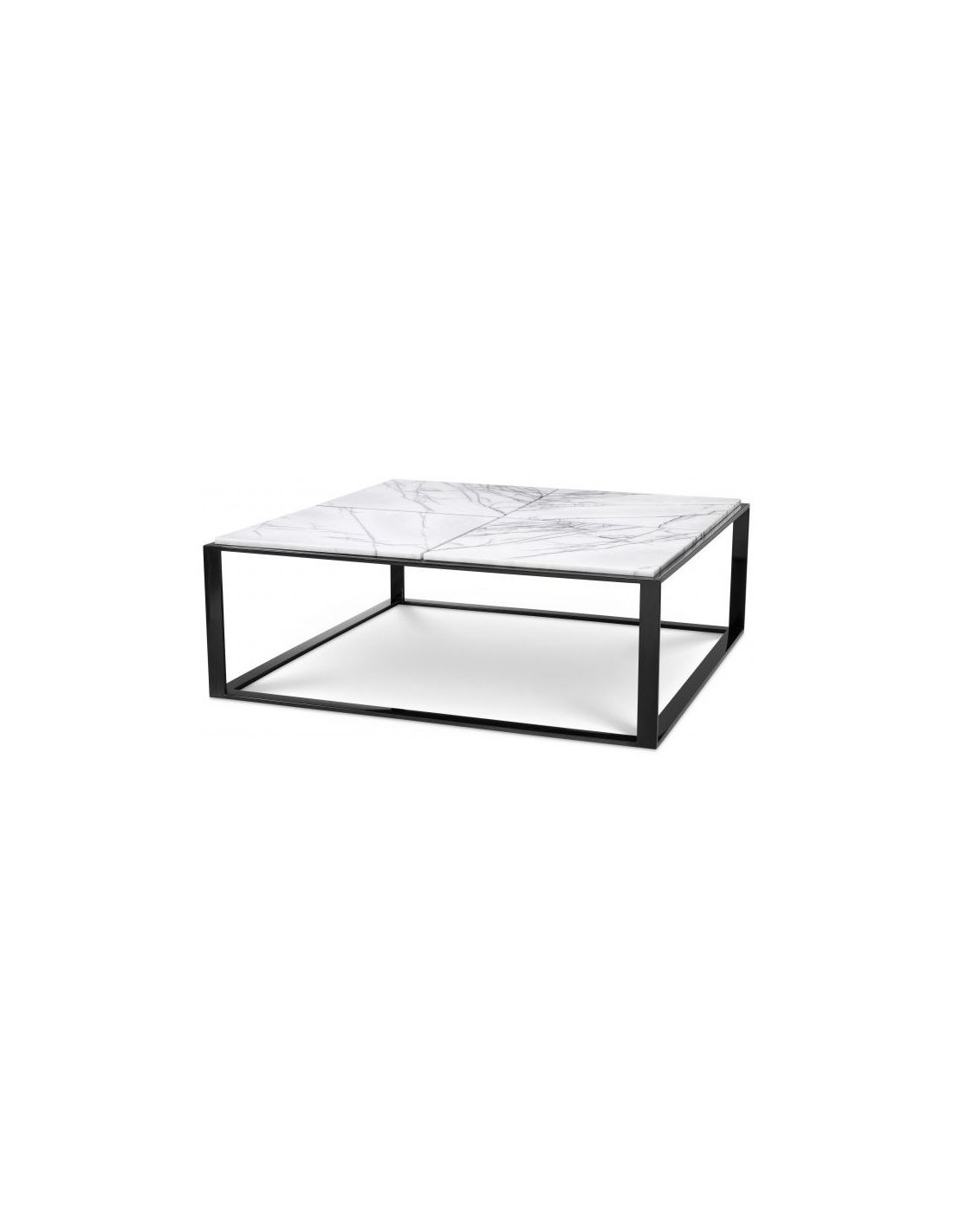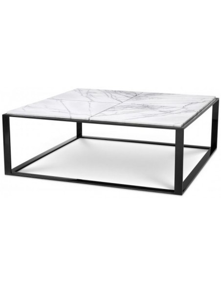 San Ramon sofabord i stål og marmor 100 x 100 cm - Sort højglans/Gråhvid